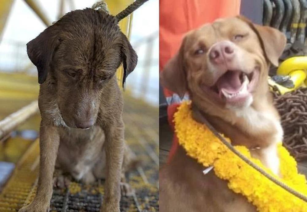 Luego, un barco que transporta víveres y agua a la instalación de crudo trasladó al perro a la provincia de Songkhla, en el sur de Tailandia.