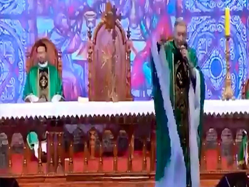 Sacerdote es empujado en misa.