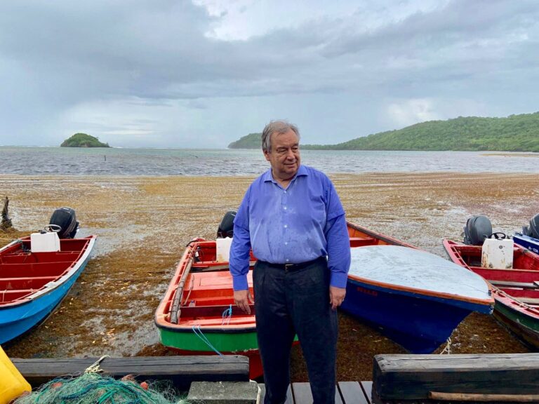 Gutérres observó los “efectos devastadores” del sargazo en el ecosistema y en la comunidad de Praslin. “Lo que ocurre en Santa Lucía es un problema que está afectando a todas las comunidades del Caribe”, destacó el portal de Noticias ONU.
