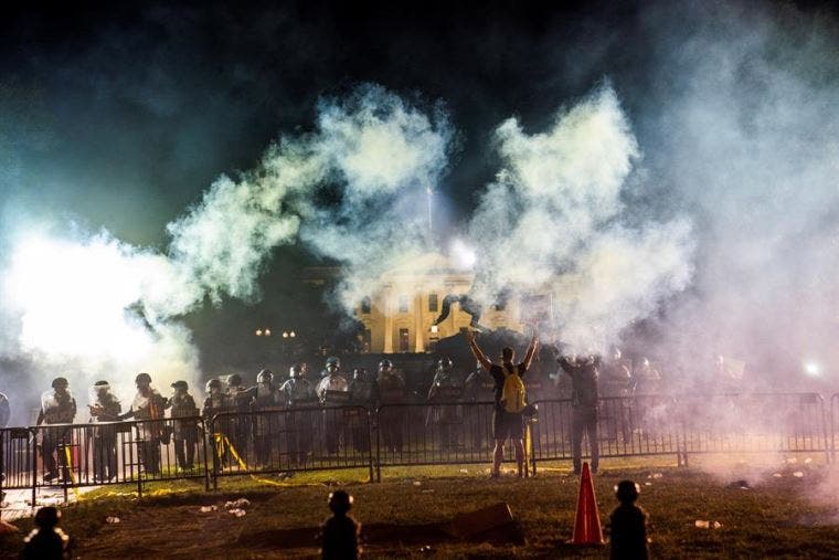 “Sin justicia no hay paz”, era uno de los gritos más insistentes que se mezclaba con el “no puedo respirar”, en alusión al pedido de Floyd, quien falleció el lunes pasado por la noche después de ser detenido de forma violenta bajo sospecha de haber intentado usar un billete falso de 20 dólares en un supermercado.