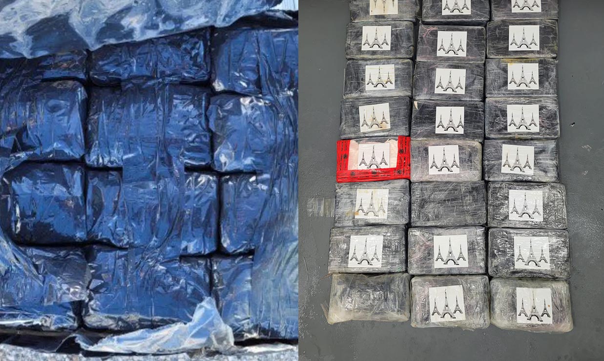 Durante el registro los agentes hallaron dinero en efectivo en una bolsa y en un compartimento en una puerta del auto y, cuando abrieron el baúl, encontraron dos bolsas con 30 paquetes en su interior que contenían un total de 35.4 kilos de cocaína.
