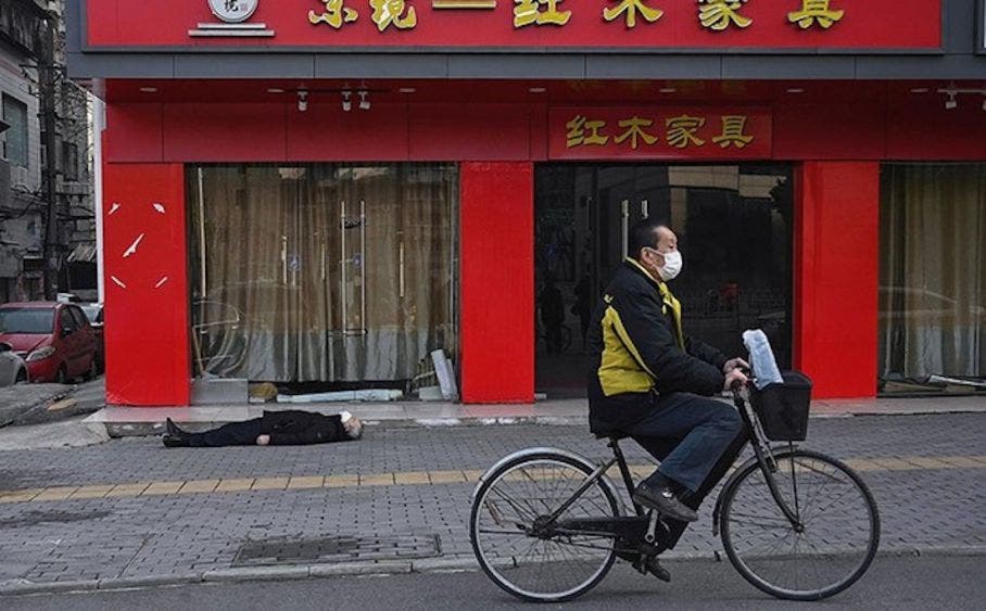 En ella, el cuerpo de un hombre fallecido aparece tumbado boca arriba, con una mascarilla, en el suelo de una calle cercana a un hospital en el que se trata a algunos de los infectados. A unos metros, otro ciudadano de Wuhan que transita con una bicicleta, enfundado también en una mascarilla, y pasando de largo ante una situación que, en condiciones normales, habría destapado la solidaridad y alarma de cualquiera de los viandantes que cruzase la zona.