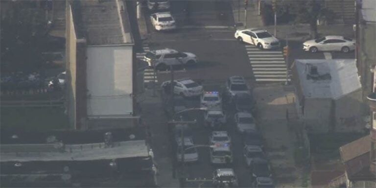 Un vídeo que se filtró muestra como las cadenas afiliadas muestran que un vehículo blindado se acerca a una calle residencial en el norte de Filadelfia, donde muchos policías se arrodillan y se agachan detrás de varios autos con armas en la mano.