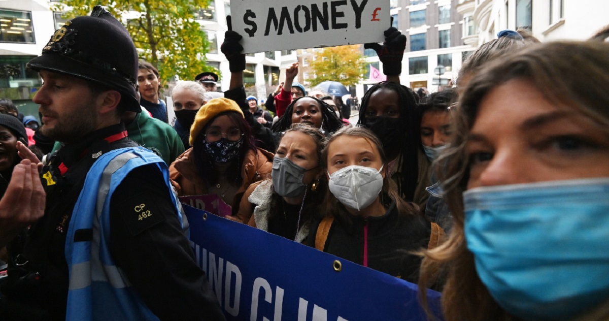 La activista sueca Greta Thunberg protagonizó una protesta en Glasgow, junto al centro de convenciones donde se está desarrollando la cumbre del clima, contra los mandatarios mundiales que se encontraban debatiendo las nuevas medidas para proteger el planeta.
