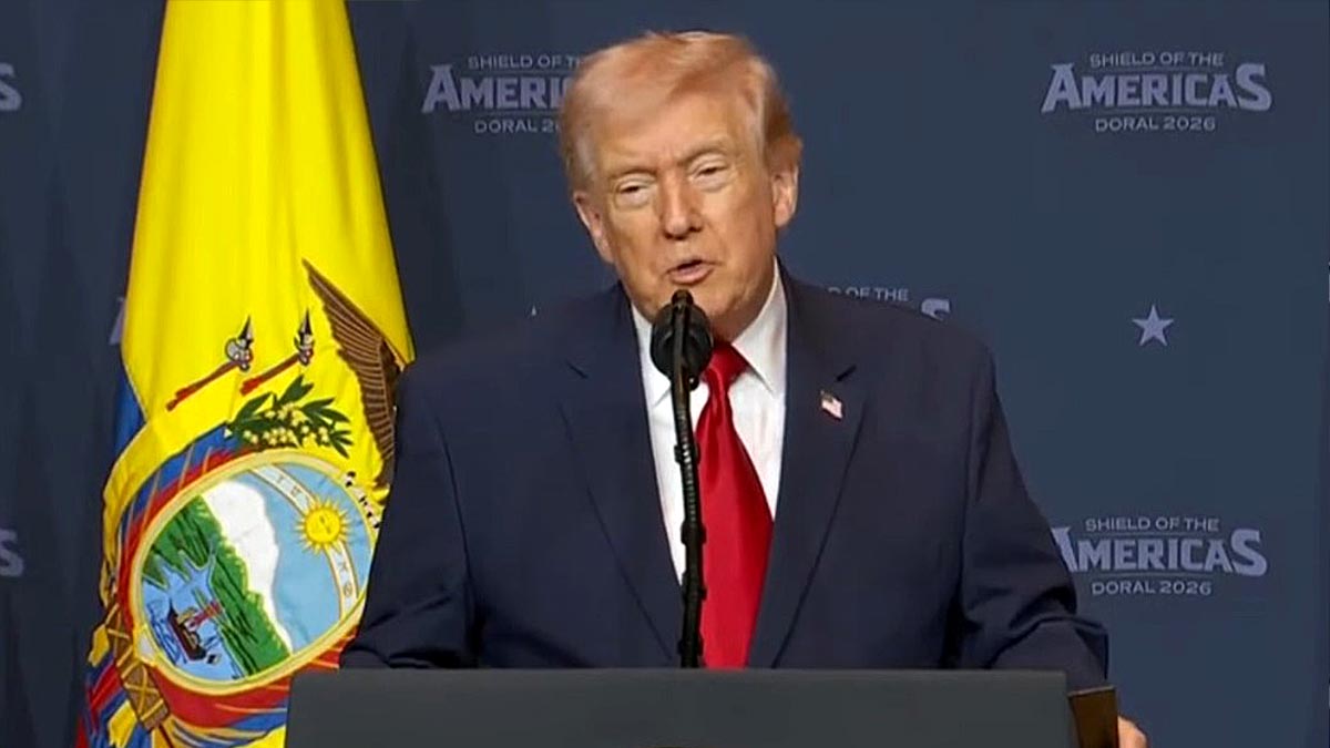 Durante su discurso en la cumbre «Escudo de las Américas» en su resort de Doral el presidente Donald Trump centró gran parte de sus palabras en México al que señaló como el principal problema de seguridad en el hemisferio occidental y «epicentro de la violencia de los cárteles».