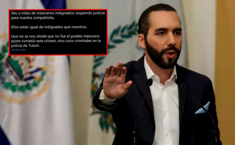 “Veo a miles de mexicanos indignados, exigiendo justicia para nuestra compatriota. Ellos están igual de indignados que nosotros. Que no se nos olvide que no fue el pueblo mexicano quien cometió este crimen, sino unos criminales en la policía de Tulum”, fue el Twitter del presidente de El Salvador, quien además de exigir justicia, indicó que la mujer asesinada a manos de la policía, tenía varios años viviendo en México con una “Visa humanitaria”.