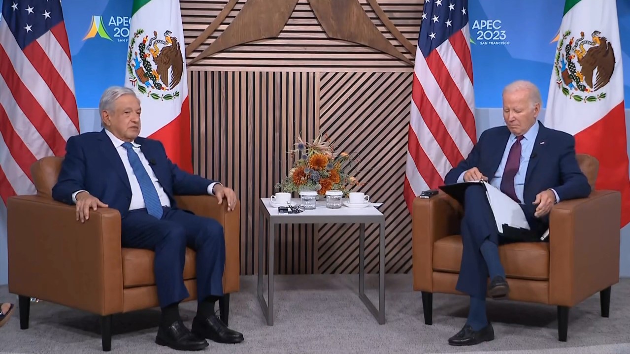 En el marco de la cumbre de países que integran el foro de cooperación económica Asia Pacífico (APEC) se realiza la cuarta reunión bilateral entre ambos mandatarios. López Obrador subrayó que México y Estados Unidos son los principales socios comerciales en el mundo. “Esto es algo excepcional y al mismo tiempo hay cerca de cuarenta millones de mexicanos trabajando honradamente en Estados Unidos, eso nos hermana aún más. Tenemos que seguir avanzando para atemperar, para resolver el fenómeno migratorio en la región”.