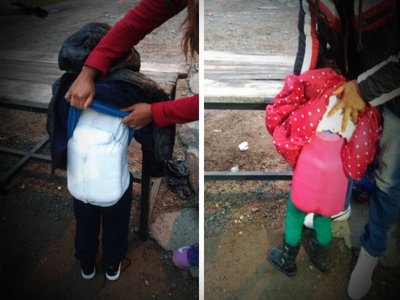 Fue entonces que los oficiales les solicitaron destapar a los niños, pero cuando los adultos lo hicieron, notaron que los niños tenían deformaciones en la ropa que no correspondían al cuerpo.