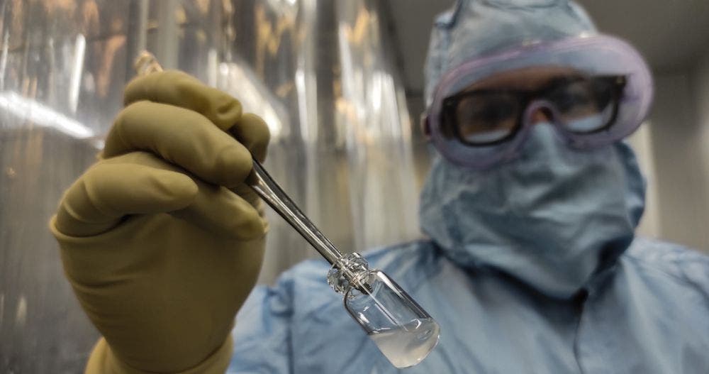El técnico Yoel Hernández trabaja en la planta de procesamiento de envases de vacunas del Instituto de Vacunas Finlay en La Habana, Cuba.