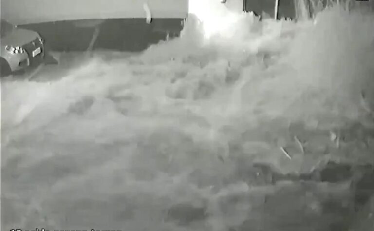 Cabe mencionar antes del incidente se observa la caída de una lluvia ligera, la cual fue exactamente a las 21:56 horas cuando el fondo de la alberca se desprende ocasionando que el agua inundara la zona de vehículos.
