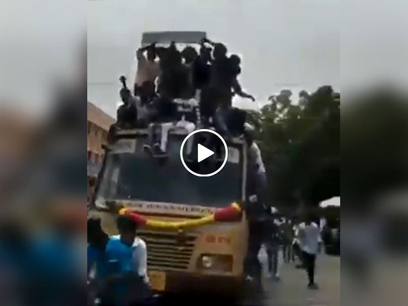 En el fragmento se aprecia como autobús, que llevaba veinte personas aproximadamente en el techo, se impactó contra una moto que se frenó para que el vehículo de gran tamaño impactara y, seguidamente, cayeran las personas que viajaban en la parte alta.