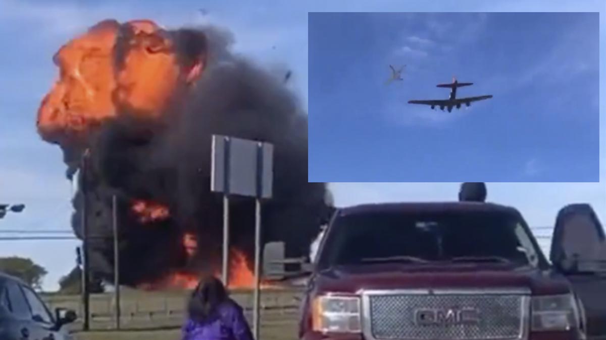 Un espectáculo aéreo que se llevaba a cabo en el Aeropuerto Ejecutivo de Dallas, en Texas Estados Unidos, terminó en tragedia cuando dos aviones, un boeing B-17 y un Bell P-63 chocan en el aire y caen al suelo estallando.