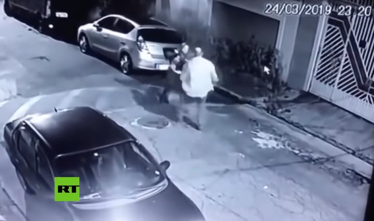El atacante, identificado como Francisco Gonsalves dos Santos Junior, de 40 años, quedó tendido en el pavimento con un disparo a la altura del pecho.