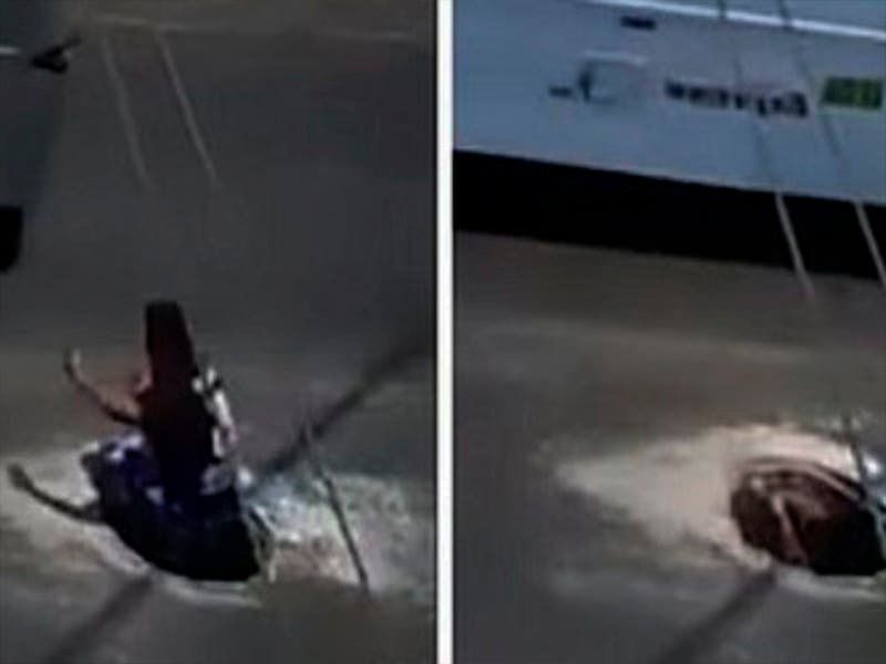 Las cámaras de seguridad captaron el momento en que un hombre cayó a la alcantarilla por ir hablando por teléfono y perder de vista su camino.