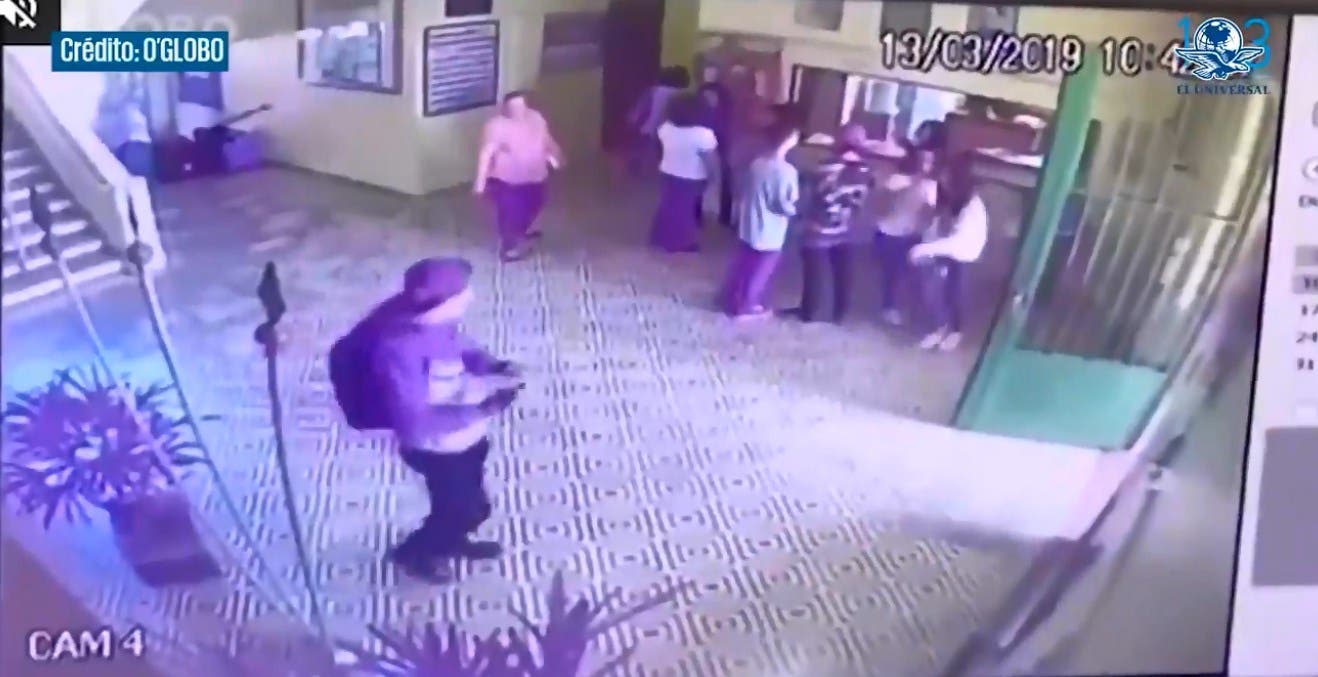 La policía brasileña liberó un video de seguridad, filmado al interior de la Escuela Raúl Brasil, en Sao Paulo, donde dos exalumnos ingresaron y mataron a 8 personas antes de suicidarse.