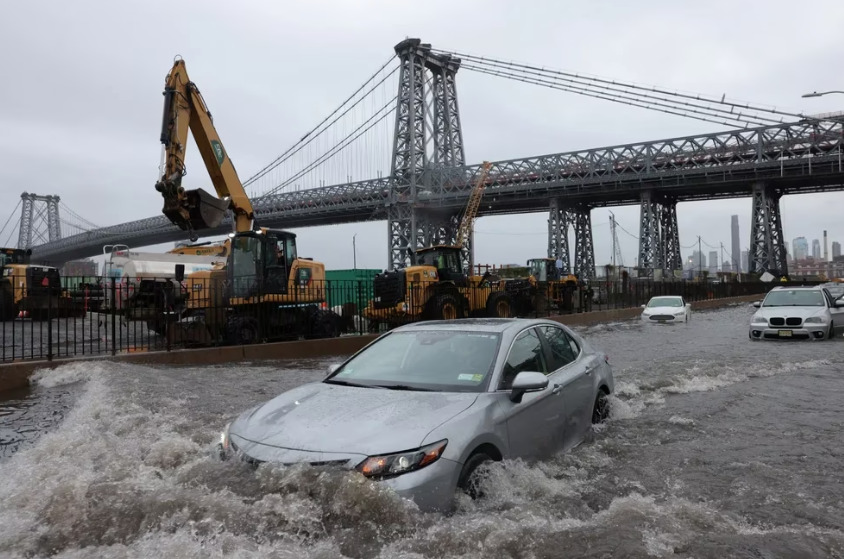 La torrencial precipitación, inundó la mayoría del área metropolitana de Nueva York, bloqueando varias partes del sistema de metro de la ciudad e inundando varias estaciones, calles y carreteras.