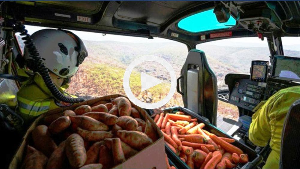 Matt Kean, ministro de medio ambiente de Nueva Gales del Sur, informó a través de Twiter de la singular estrategia, que denominaron «Operatión rock wallabi» y en un video que medios locales compartieron, puede verse como trabajadores gubernamentales cargan un helicópteros con la “munición” de hortalizas, que poco después son arrojadas desde lo alto en las zonas donde el fuego ha consumido la flora del lugar dejando sin alimento a las especies del lugar.