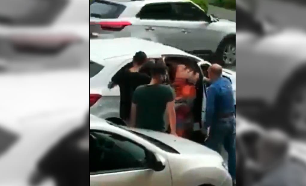 En el fragmento que grabó un testigo del hecho, se puede apreciar que los presentes defienden a la mujer engañada al grado de llegar a los golpes con el conductor del automóvil blanco, quien se cree, es su esposo.