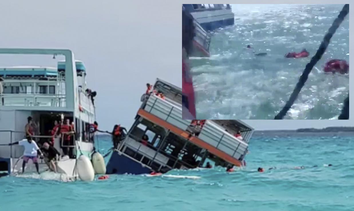 Un video compartido en redes sociales capturó el momento en que el catamarán comenzó a inclinarse, provocando que algunos pasajeros saltaran al agua y nadaran hacia embarcaciones cercanas.