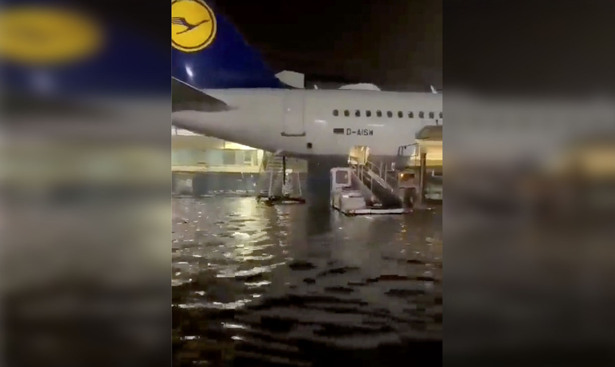 Tormenta inunda aeropuerto de Frankfurt en Alemania