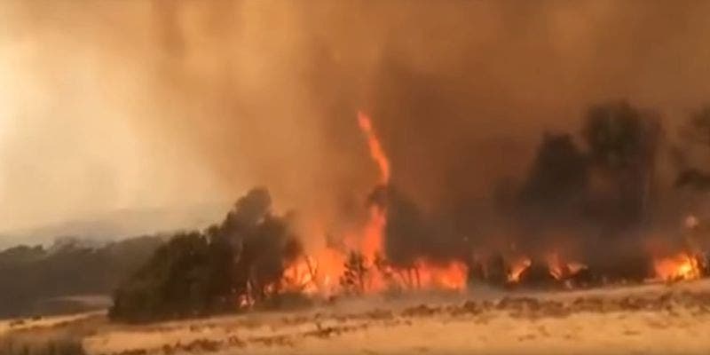 El tornado se originó en medio del fuego que consumía los árboles y la hierba. Por ello, se crearon columnas de humo que alzaron las llamas provocando este aterrador efecto en el aire.