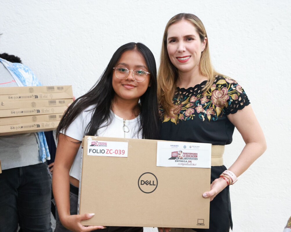 Isla Mujeres.- Cumpliendo uno de sus principales compromisos con la juventud isleña, la Presidenta Municipal, Atenea Gómez Ricalde, entregó 300 computadoras a estudiantes de bachillerato y universidad de todo el municipio, como parte del Programa “Transformando la Educación”.