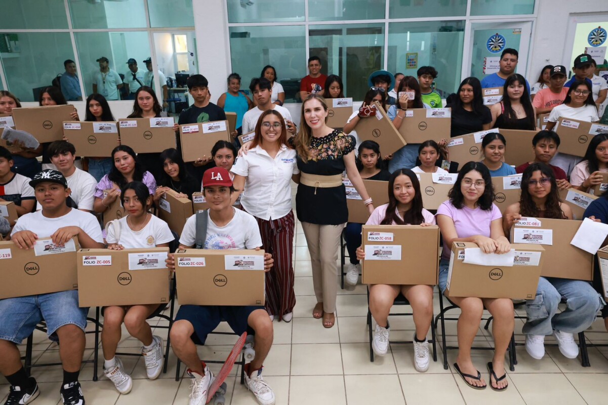 La Presidenta Municipal de Isla Mujeres, Atenea Gómez Ricalde, cumplió un compromiso más con la juventud isleña, al entregar computadoras nuevas a estudiantes de bachillerato y universidad, en la Zona Continental, como parte del Programa Transformando la Educación.