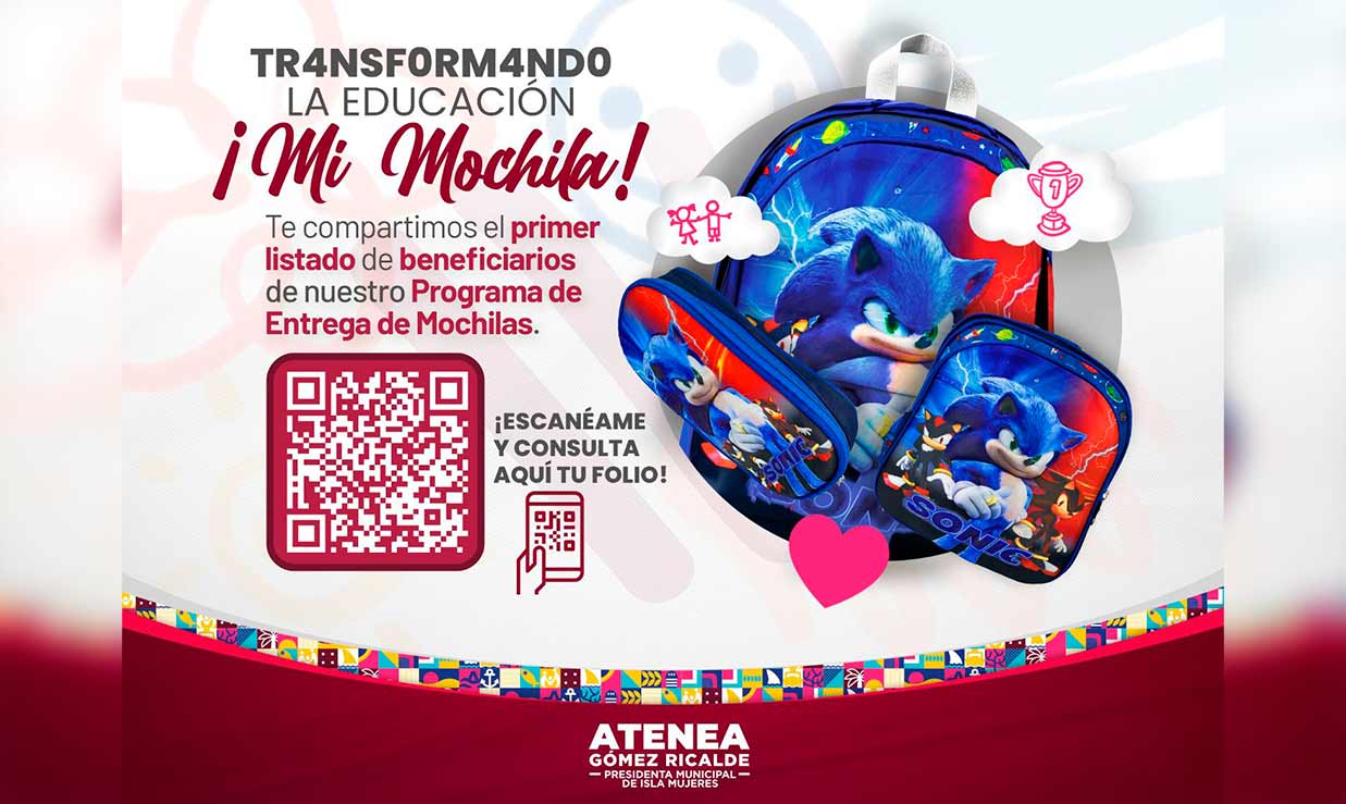 El Gobierno Municipal de Isla Mujeres que encabeza la alcaldesa Atenea Gómez Ricalde, informó que está todo listo para la próxima entrega de mochilas escolares perteneciente al nuevo y exitoso programa Transformando la Educación ¡Mi Mochila!, que beneficiará a más de 3 mil alumnos de nivel preescolar y primaria.
