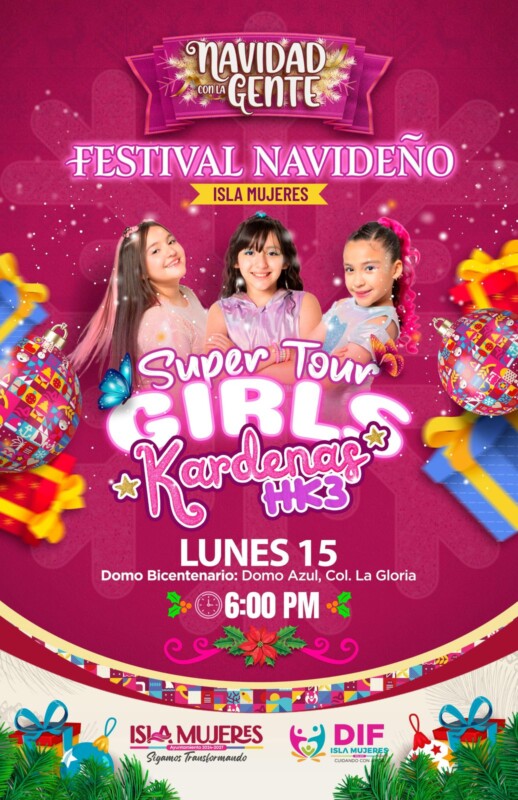 En el marco del programa “Navidad con la Gente”, el Gobierno de Isla Mujeres que encabeza la alcaldesa Atenea Gómez Ricalde, celebrará en grande a la niñez isleña con los Festivales Navideños, que serán amenizados por Las Hermanitas Kardenas.