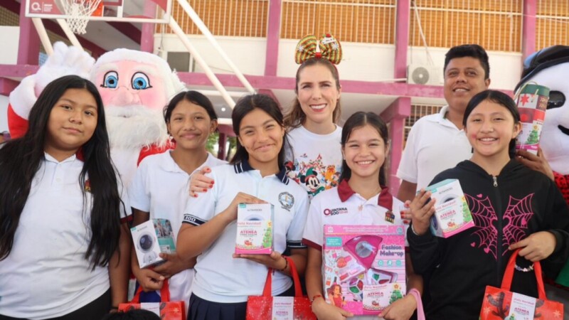 Con el compromiso y amor genuino por la niñez isleña, la Presidenta Municipal, Atenea Gómez Ricalde, continúa con la entrega de juguetes como parte del Programa Navidad en tu Escuela.