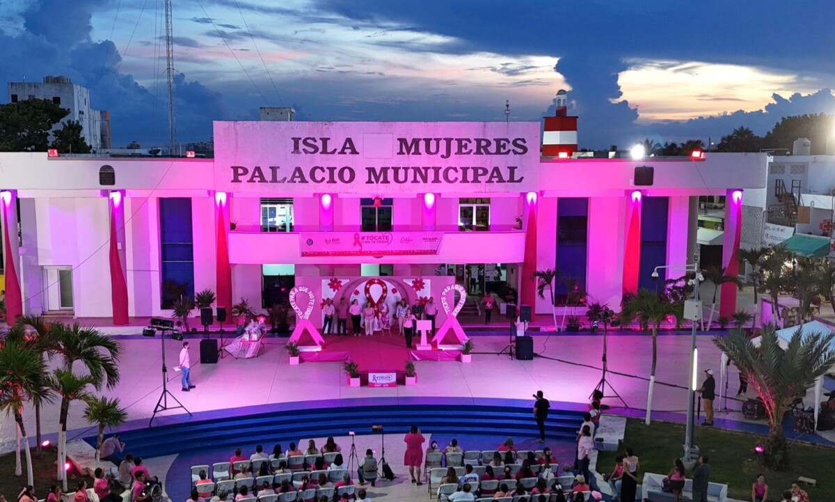 “Hoy, encendimos de rosa nuestro Palacio Municipal y lo hicimos de la mano de mujeres valientes que sobrevivieron al cáncer de mama, porque ellas son un ejemplo de lucha y esperanza. Desde el corazón, quiero decirles que no están solas, que este Gobierno está con ustedes y con cada familia que ha enfrentado esta enfermedad”, destacó la alcaldesa isleña.