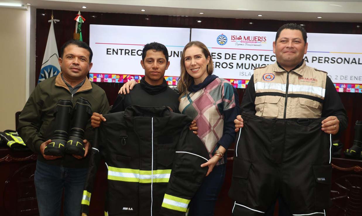 “Con esta entrega de equipo estructural, protegemos la vida y la integridad de nuestros bomberos, porque sabemos que su trabajo es fundamental para cuidar a las familias de Isla Mujeres. Cumplimos nuestro compromiso de brindarles herramientas seguras y de calidad, que les permitan desempeñar mejor su labor y responder con mayor eficacia ante cualquier emergencia”, destacó la alcaldesa isleña.