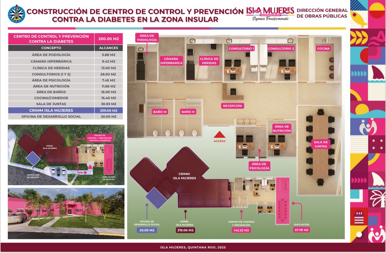 “Hoy damos un paso importante en la lucha contra la diabetes, una enfermedad crónico-degenerativa que afecta a millones de personas en nuestro país y en una condición de isla donde los pacientes necesariamente tienen que trasladarse a Cancún, el problema es más complicado, por eso iniciamos la construcción de lo que será el nuevo Centro de Control y Prevención de la Diabetes”, reiteró la alcaldesa isleña.