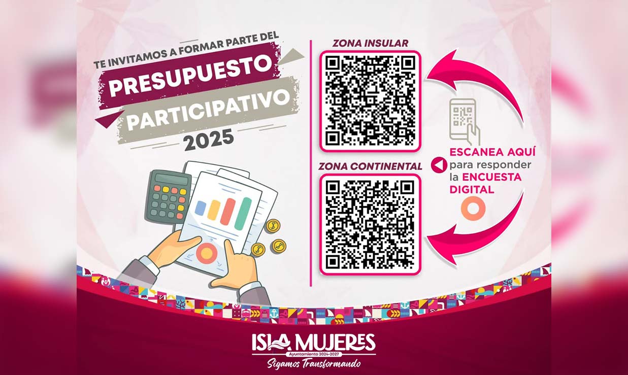 Reafirmando su compromiso con un gobierno transparente y cercano a la gente, la Presidenta Municipal, Atenea Gómez Ricalde, invita a las isleñas e isleños a participar en la segunda etapa del Presupuesto Participativo a través de la Consulta Pública, un ejercicio que refuerza la transparencia y la toma de decisiones colectivas para el desarrollo del municipio.