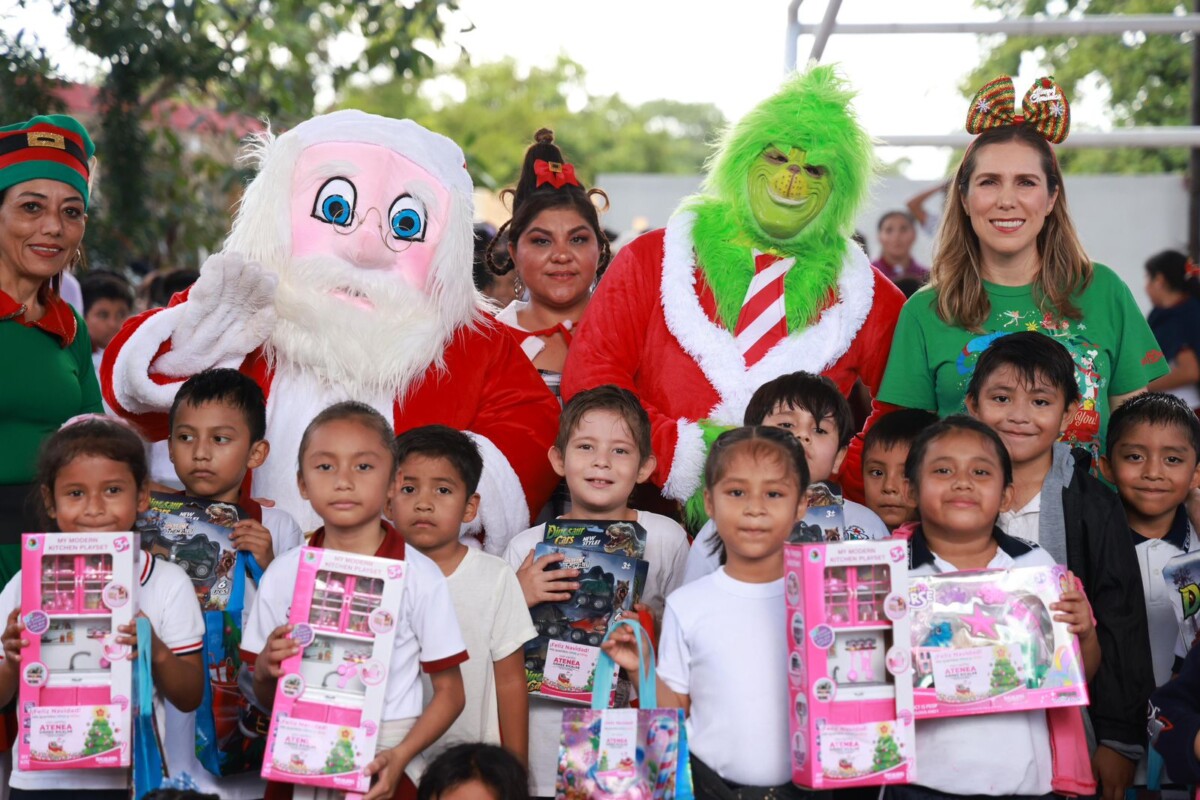 Acompañada de personajes navideños como Santa, el Muñeco de Nieve y El Grinch, Atenea Gómez recorrió esta mañana los jardines de niños Juan de la Barrera y Matilde Petra Montoya Lafragua, así como las primarias Enrique Estrella Oxté y Centenario de la Constitución.