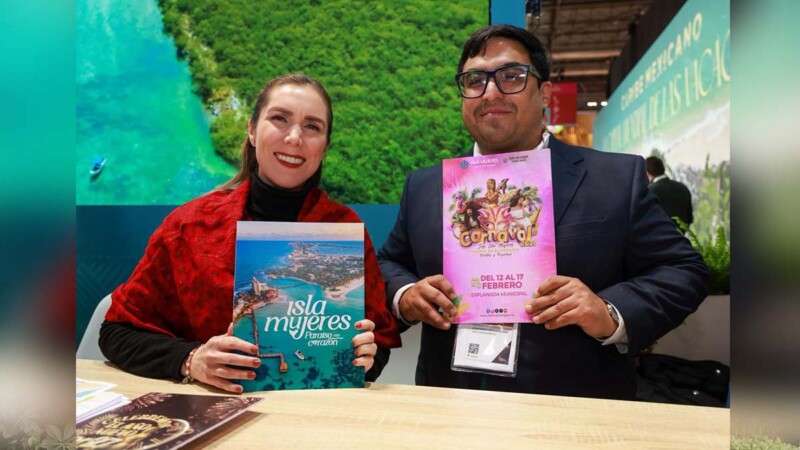 Como parte de su agenda de promoción en FITUR 2026, la Delegación de Isla Mujeres encabezada por la Presidenta Municipal, Atenea Gómez Ricalde, presentó en la pantalla gigante del Pabellón de México, el video oficial del Carnaval “Soy Isla Mujeres” 2026, la celebración más importante y esperada por las familias isleñas y visitantes.