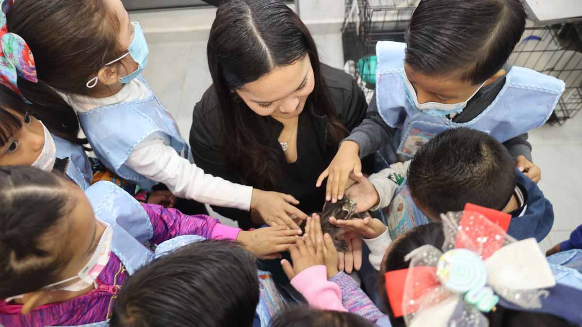 La Coordinadora del Centro de Bienestar Animal, Karla Celia García Gómez, acompañó a las niñas y niños durante el recorrido, explicándoles de manera didáctica la importancia de brindar amor, respeto, atención médica y un hogar seguro a las mascotas.