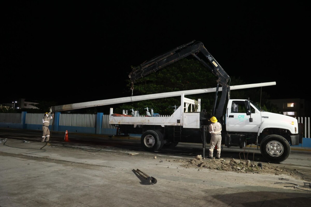Los trabajos del retiro de postes de alumbrado público iniciaron anoche y se extendieron hasta altas horas de la madrugada, esto para no afectar la movilidad cotidiana ni la actividad turística.