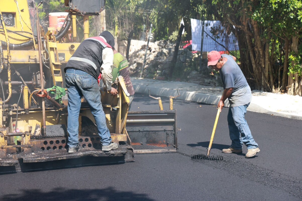 Con un avance general del 80%, continúa la obra integral de la colonia El Oasis, en la Zona Continental de Isla Mujeres, la cual transformará la calidad de vida de sus habitantes, con calles pavimentadas e iluminadas.