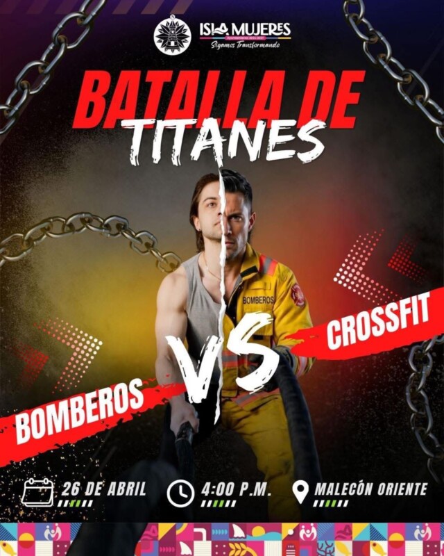 Isla Mujeres, Quintana Roo, a 23 de abril de 2026.- El Ayuntamiento de Isla Mujeres, que encabeza la presidenta municipal, Atenea Gómez Ricalde, invita a las familias isleñas y a las y los visitantes a disfrutar de la “Batalla de Titanes: Bomberos vs CrossFit”, una competencia que pondrá a prueba la fuerza, resistencia y disciplina de sus participantes en un ambiente de sana convivencia.