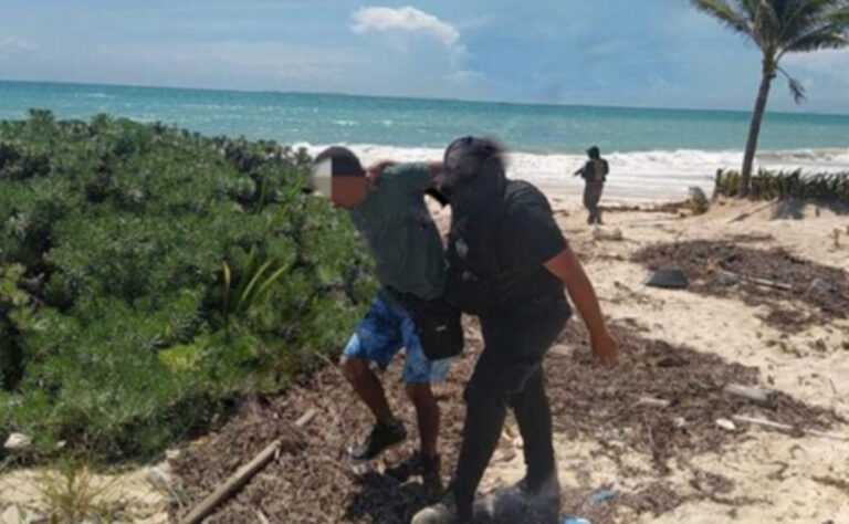 Los uniformados de corporaciones federales, Policía Ministerial y Policía Quintana Roo, realizaron revisiones en la playa conocida como Isla Blanca, ubicada en la zona continental de Isla Mujeres, logrando asegurar a dos personas.
