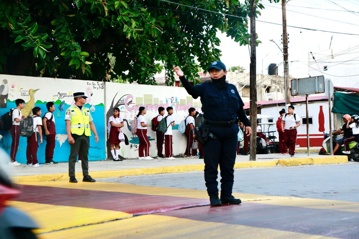 Con el propósito de brindar mayor seguridad a los estudiantes que hoy regresaron a las aulas después del periodo vacacional de Semana Santa, el Gobierno municipal de Isla Mujeres que encabeza Atenea Gómez Ricalde puso en marcha el programa “Escuadrón Víal Escolar”, con el cual se reforzó la vigilancia y seguridad en el horairo de entrada y salida de todos planteles escolares del municipio.