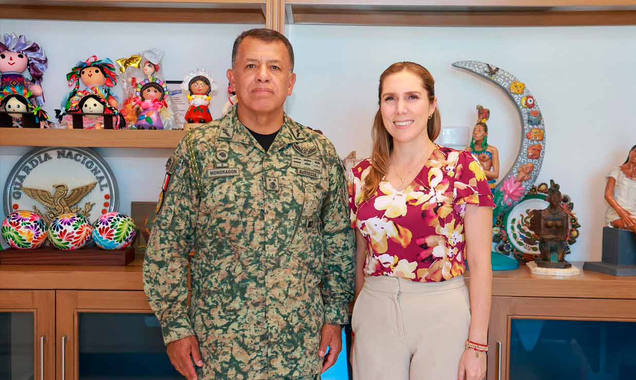 Atenea Gómez, sostuvo una reunión con el General de Brigada Diplomado de Estado Mayor (DEM) Fidel Mondragón Rivero, Comandante de la 34 Zona Militar, a quien reiteró que el Gobierno Municipal seguirá trabajando de la mano con el Estado y la Federación, para abonar a la construcción de paz y tranquilidad en Quintana Roo.