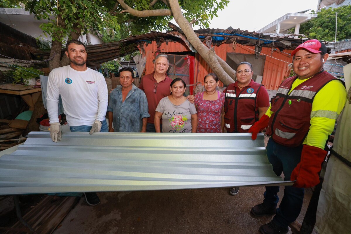 La entrega de láminas inició en la colonia La Guadalupana en la Zona Insular, para que las familias más vulnerables pueda reforzar sus viviendas en esta temporada de lluvias y ciclones tropicales.