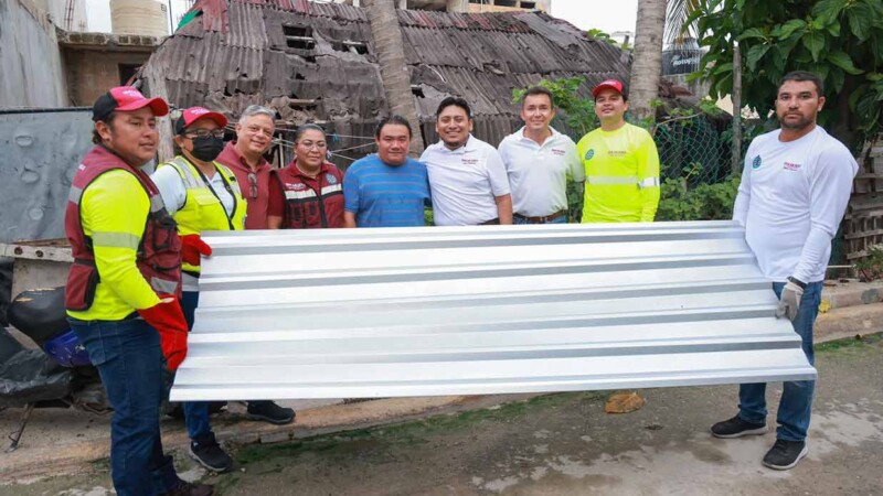 La entrega de láminas inició en la colonia La Guadalupana en la Zona Insular, para que las familias más vulnerables pueda reforzar sus viviendas en esta temporada de lluvias y ciclones tropicales.
