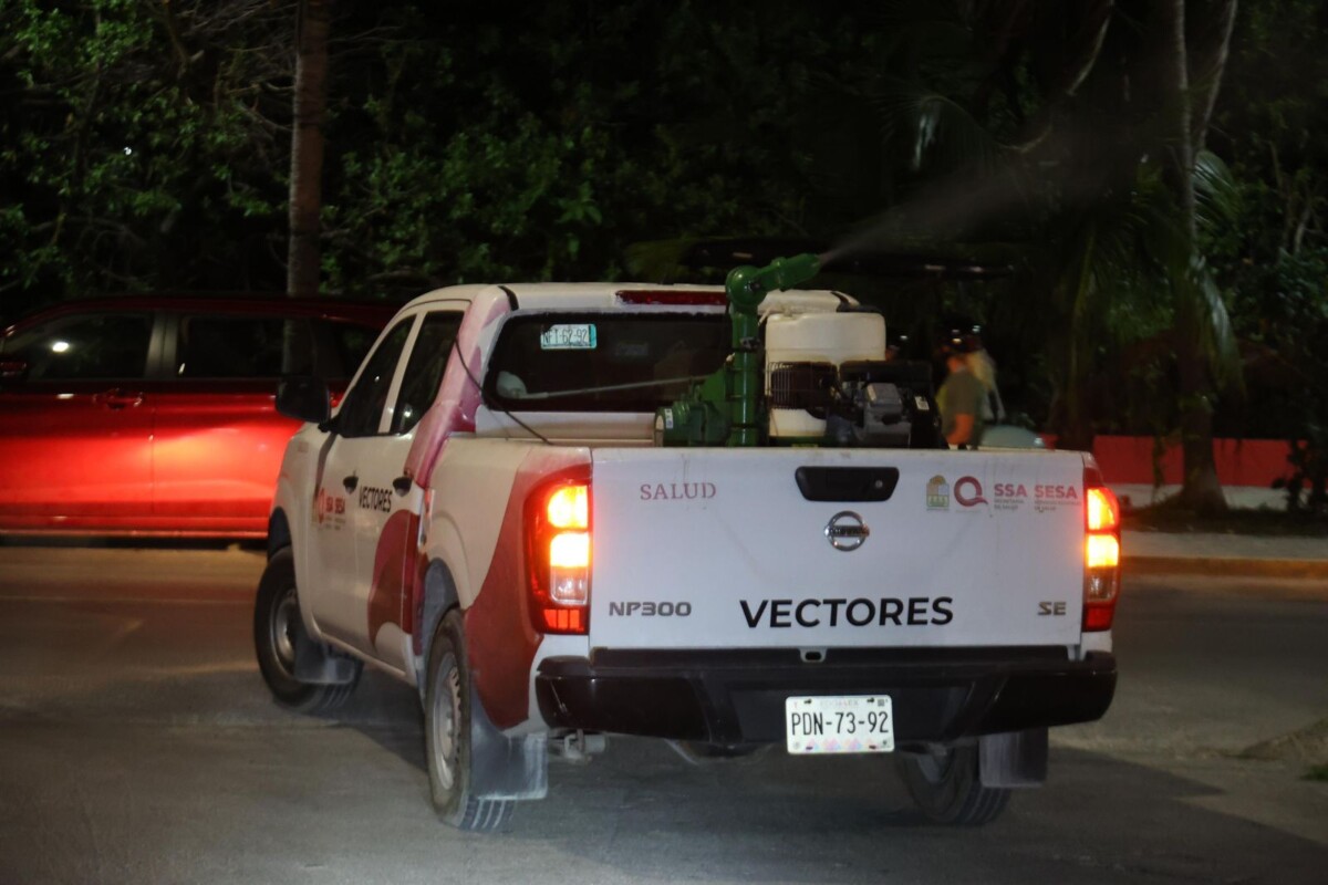 La Directora de Salud del municipio, Teresa Gómez Herrera, destacó que, en coordinación con la el Área de Vectores de la Jurisdicción Sanitaria Número 2 y la Secretaría de Salud de Quintana Roo, cada semana se está fumigando todo el municipio.