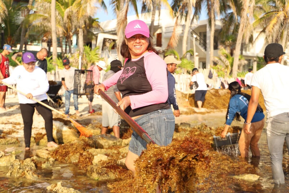 Isla Mujeres.- Con atención inmediata y un fuerte espíritu de solidaridad, el Gobierno Municipal de Isla Mujeres, que encabeza la presidenta municipal, Atenea Gómez Ricalde, respondió de manera oportuna al recale atípico de sargazo registrado en la zona de El Riíto, a un costado de Playa Norte, donde se recolectaron cerca de 100 toneladas del alga marina.