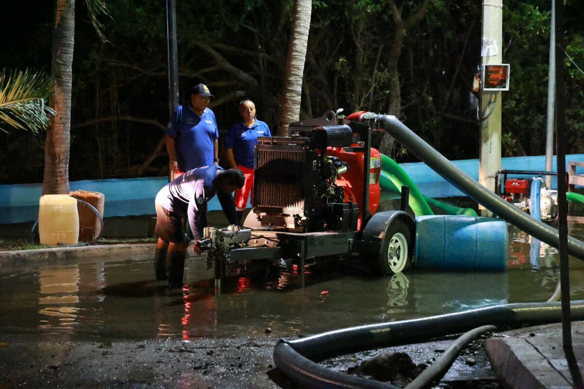 Luego del paso del huracán “Helene”, el Gobierno Municipal que encabeza la alcaldesa Atenea Gómez Ricalde, a través de la Dirección de Protección Civil, continúa con los trabajos para reducir los niveles de agua en las salinas, ante el pronóstico de más lluvias para la próxima semana.