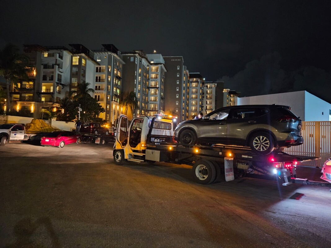 El operativo tuvo lugar en las inmediaciones de la terminal del ferry en Punta Sam, punto estratégico para la conexión turística. En ese sitio, elementos de la Policía Estatal y de Investigación ingresaron al estacionamiento donde habitualmente se concentran vehículos que prestan servicio hacia el corredor turístico de Costa Mujeres.