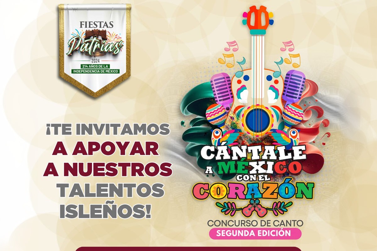 Isla Mujeres.- El Gobierno Municipal de Isla Mujeres que encabeza la alcaldesa, Atenea Gómez Ricalde, a través de la Dirección de Cultura, invita a las familias isleñas y turistas que visitan el destino, a la primera presentación del concurso “Cántale a México con el Corazón”, mañana sábado 7 de septiembre en la Explanada Municipal, a las 20:00 horas.